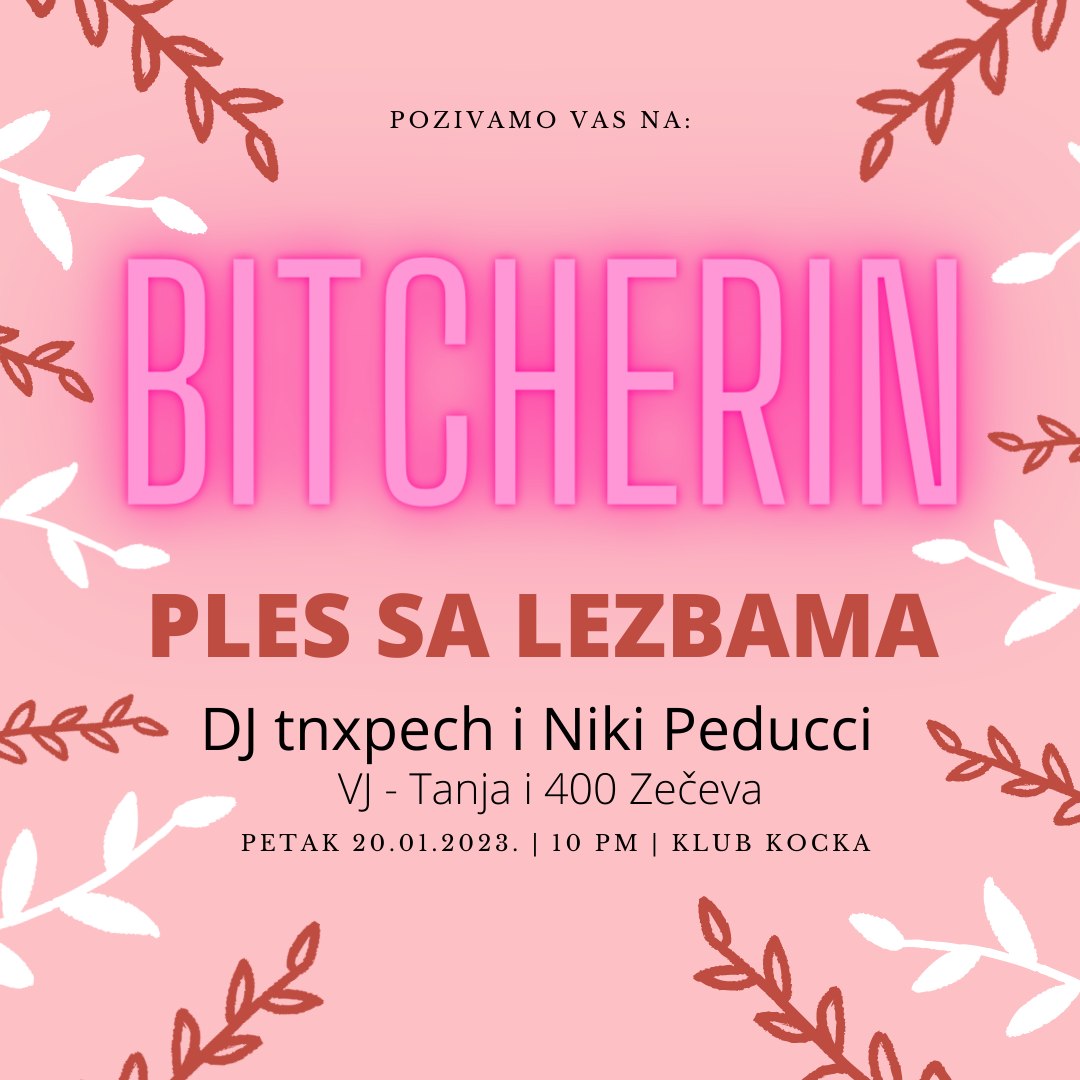 Na Bitcherinu ćete naći puno lezbi koje super plešu, ali neće biti nikakvog žirija pa možemo plesat kao da nas nitko ne gleda. Naše DJ-ice će vas tako nagarit da će vam noge otpast pa obucite najudobnije cipelice za ples.
