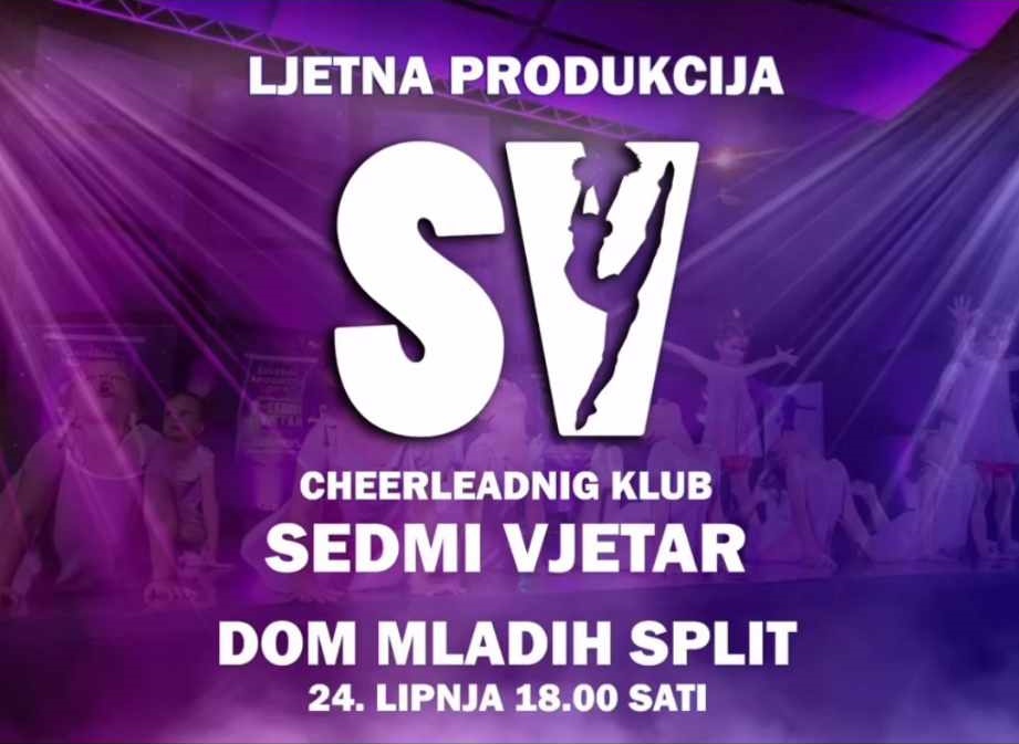 Cheerleading klub Sedmi vjetar sa zadovoljstvom vas poziva na završnu produkciju kluba koja će se održati 24. lipnja u 18 sati.