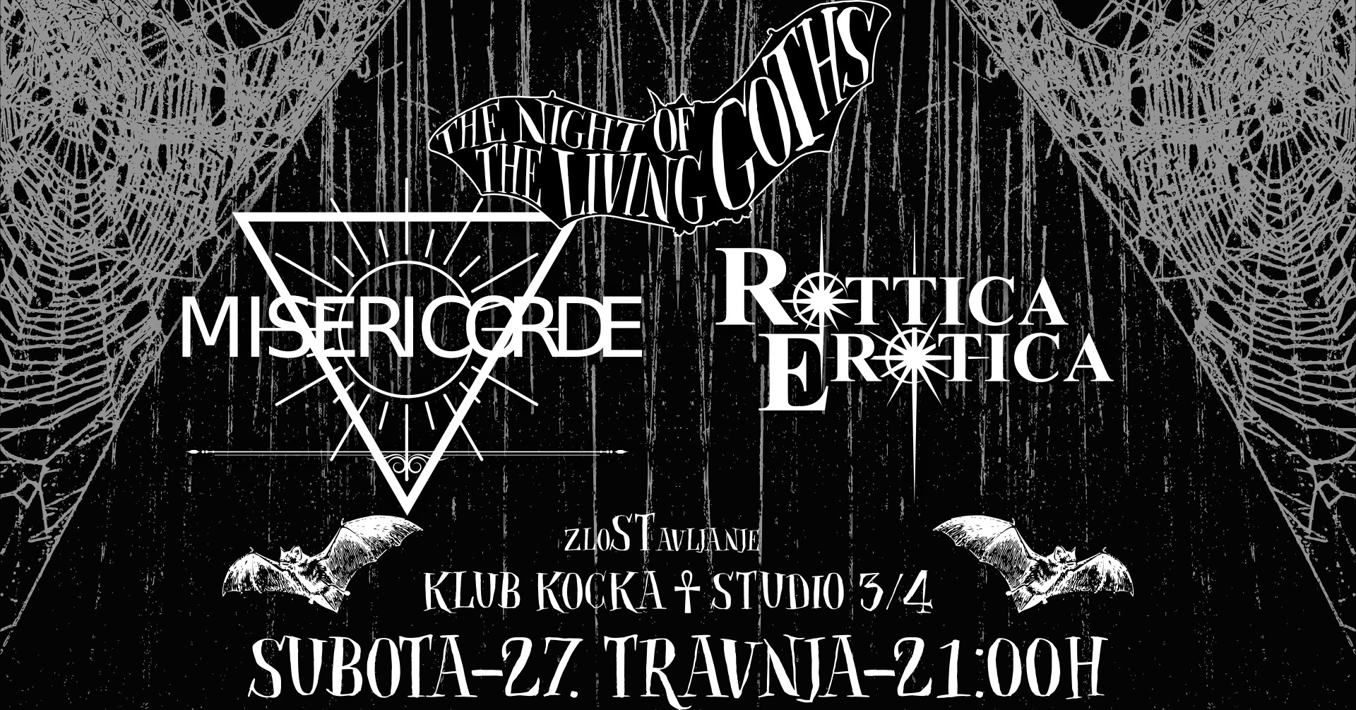 Pripremite svoje najcrnije haljine, najblijeđe pudere i natapiranih frizura dođite u subotu 27. travnja proslaviti sa nama još jednu ediciju Night of the Living Goths večeri u Klubu Kocka.
