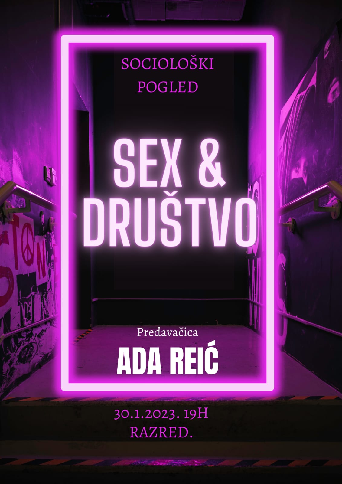 Predavanje “Sex i društvo” odgovara na pitanja utjecaja društva na seksualnost, na seksualno ponašanje, emocije, misli, očekivanja i stavove, (ne)prihvaćanje vlastite seksualnosti, na unutrašnje procese koji oblikuju individualnu sliku o sebi.